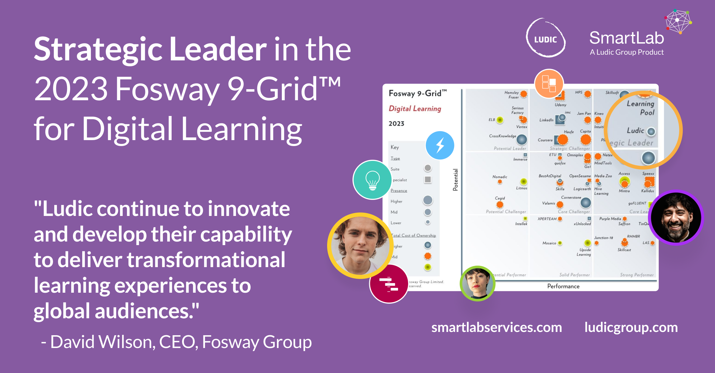 Ludic SmartLab proudly maintains its Strategic Leader position in the 2023 Fosway 9-Grid™ for Digital Learning